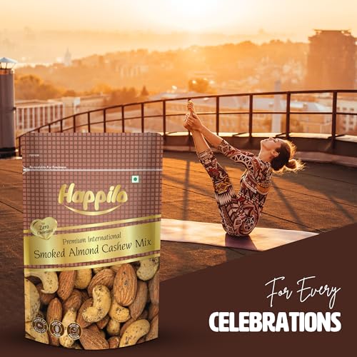 Indulge in the irresistible flavors of Happilo's Premium International Smoked Almond Cashew Mix. This exquisite blend features roasted California almonds and cashews that have been expertly smoked to perfection infusing them with a rich smoky aroma and flavor. Seasoned with Himalayan pink salt these nuts offer a delightful balance of savory and salty notes that tantalize the taste buds with every bite. Packed with protein fiber and essential nutrients this smoked almond cashew mix is not only delicious but also nutritious making it the perfect snack choice for those looking to satisfy their cravings while fueling their body with goodness. Whether enjoyed on its own or as a topping for salads yogurt or oatmeal Happilo's Premium International Smoked Almond Cashew Mix is sure to elevate your snacking experience.