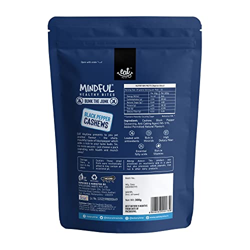 Life is full of questions & puzzles right? But EAT Anytime has solved one for you - how to enhance the taste of cashew nuts. By spicing up the world-wide popular nut with the common Indian spice black pepper creating crunchy and delish black pepper flavoured cashew nuts (Kaju). Healthy too as our black pepper flavoured cashews are baked and not fried. Black pepper cashews are 100% cholesterol free gluten free and preservative free making it anytime healthy snack.