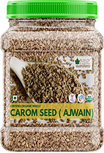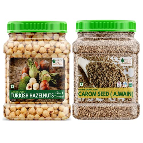 Bliss of Earth Turkish Hazelnuts are powder packed with nutrients including vitamins minerals anti-oxidants and healthy fats. Hazelnuts can be consumed as a raw snack roasted or added to baked dishes such as cake chocolates & shakes. All in all hazelnuts are an excellent and delicious source of nutrients for a healthy diet. Hazelnuts offers various health benefits including regulating blood pressure Direction for use: Consume raw roasted or salted. Add to your cake chocolates or shakes. Ingredients: Raw Dehulled Hazelnuts Country of Origin: Turkey Bliss of Earth Certified Organic Carom seed popularly known as Ajwain is one of the main culinary spice and is traditionally known for promoting digestion and treating commom cold.