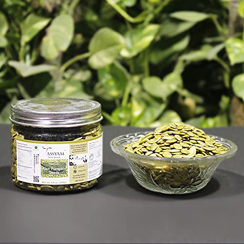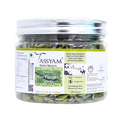 Raw Pumpkin Seeds 250gms (8.8 oz) Jar by Tassyam