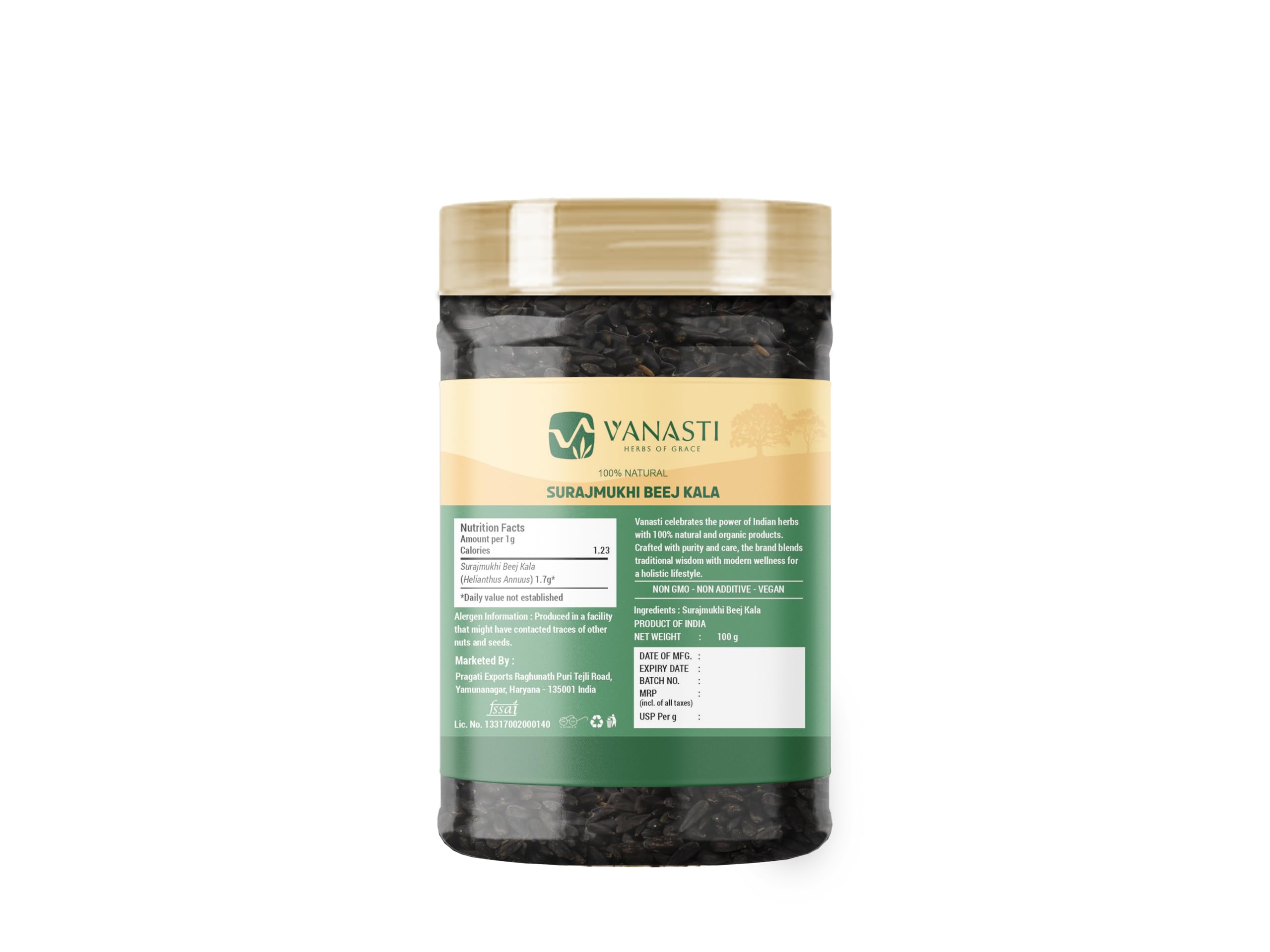 Surajmukhi Beej Kala refers to whole sunflower seeds from the Helianthus annuus plant.These small, flat seeds have a black or striped shell and a mild, nutty flavor.They contain vitamin E, selenium, zinc, and magnesium, along with plant-based fats and fiber.Each seed has a crisp bite and smooth texture when eaten whole or roasted.Popular in snack mixes and recipes, they add both flavor and crunch.Their balanced nutrient profile makes them a versatile pantry ingredient.
