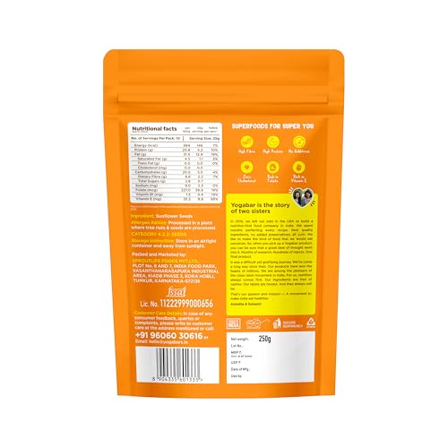 HomeGroceryNutsSeedsYogabar Roasted Chia Seeds + Sunflower Seeds 500g (250g*2, Pack of 2) | Black Calcium, Iron & Zinc - Diet Food Healthy Snacks, Sunflower Seeds for Eating Protein and Fibre