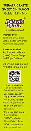 Turmeric Milk Mixes has 1 Classic Ginger I Royal Saffron and 1 Sweet pack of 50g. One 50g pack each contains 5 sachets of 10g. One sachet is good for 20 cups of 100 ml milk. Quantity can differ according to taste. Popularly known as Haldi-Dudh (Turmeric Latte in West) this is a traditional Indian mix of turmeric Saffron/Ginger/ & select added in hot milk offering many health benefits.. You may add jaggery/honey to your taste. Add 1tbsp Desi Ghee in the hot milk (optional). Stir well & serve. Note: Jaggery/honey is not added while boiling the milk. Add it later before serving.