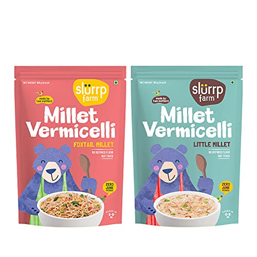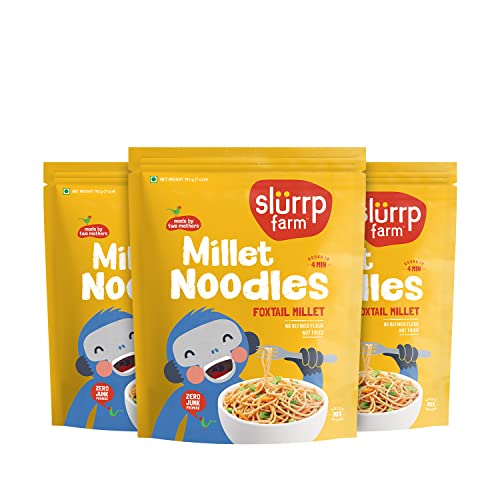 Slurrp Farm No Maida Millet Noodles | Not Fried No MSG | Foxtail Millet Noodles Pack of 3-192g EachNo maida refined sugar and palm oil not friedSlurrp Farm Millet Vermicelli Semiya – No Maida No White Rice Foxtail Millet and Little Millet Vermicelli 180 g each (Pack of 2)No maida no white rice. Zero trans fat saturated fat and cholesterol