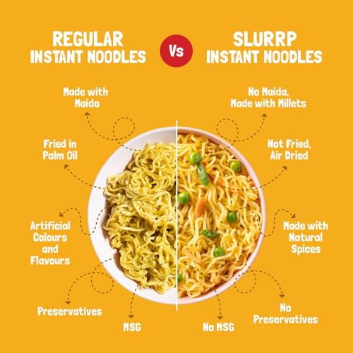 Slurrp Farm No Maida, No MSG Instant Noodles | Magic Masala | Not Fried, Millet Noodles, 4 X 57 g