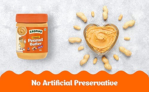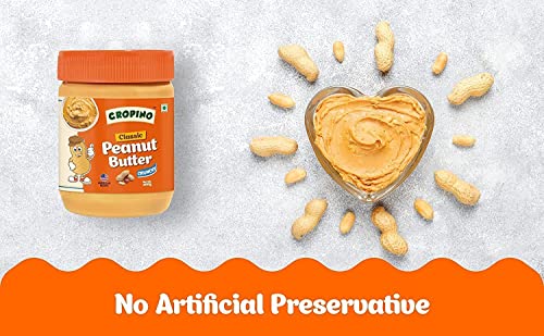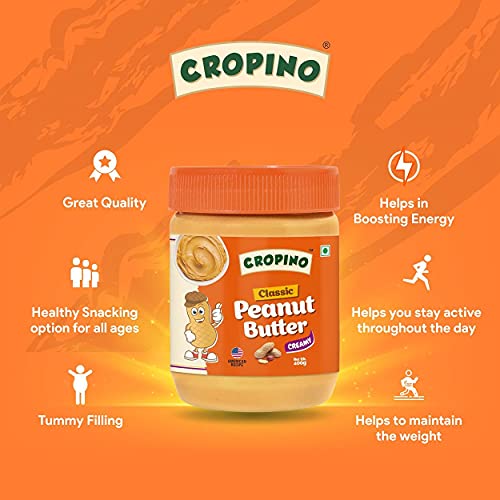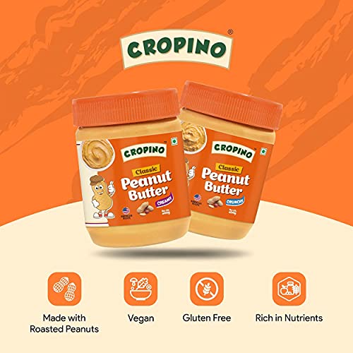 CROPINO Classic Peanut Butter Creamy 400g & Peanut Butter Crunchy 400g | Made with Roasted Peanuts | Gluten Free | 26G Protein | Cholesterol Free | Non GMO | Vegan | Ready to Eat | Pack of 2