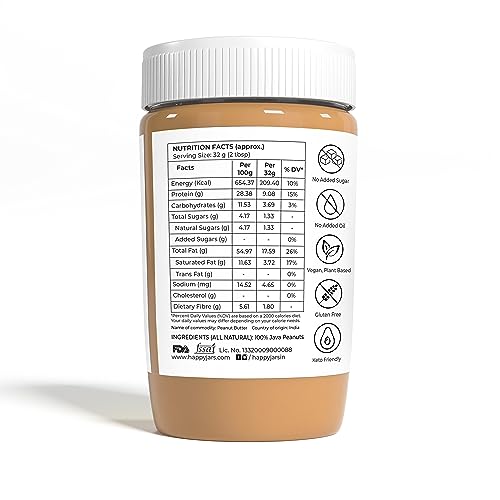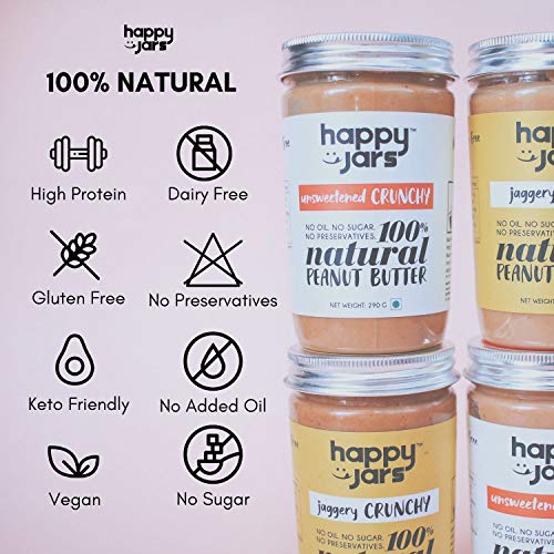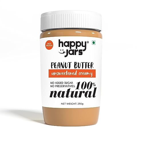 Happy Jars Peanut Butter Unsweetened Creamy 290g | High Protein | 100% Java Peanuts | Natural Ingredients Nut Butter | Also Suitable for Babies