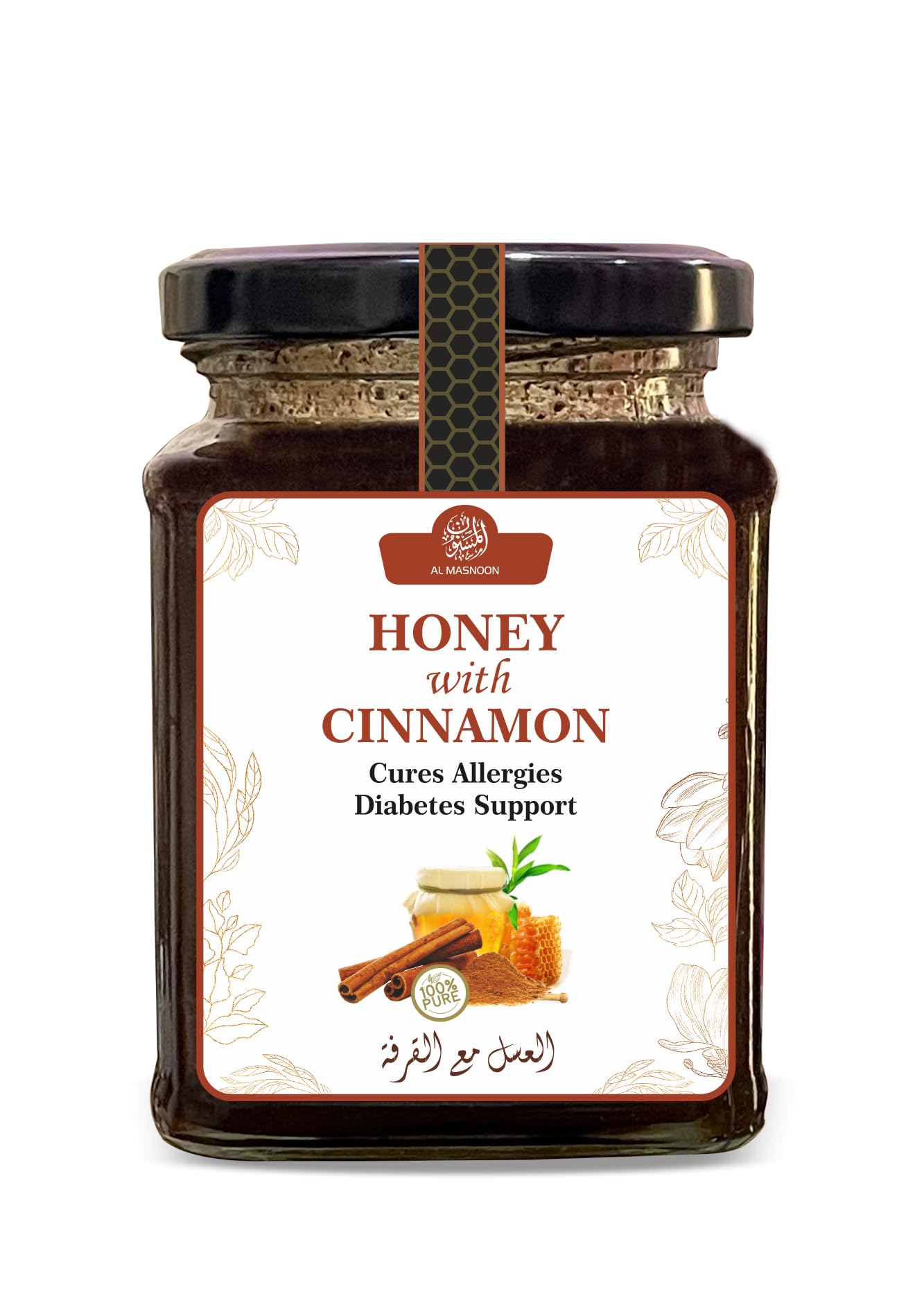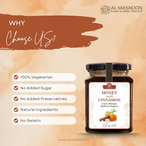 AL MASNOON Cinnamon Honey/Honey With Cinnamon/Infused Honey / 100% Natural/Pure & Unprocessed 300g (Pack of 1)
