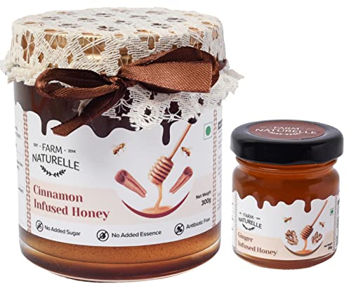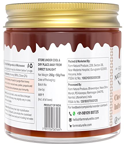 Farm Naturelle Honey-Cinnamon Infused Honey | No Added Sugars, No Adulteration, Improves Immunity| 100% Pure Raw Natural Wild Forest Honey-300g and Clove Honey 55g