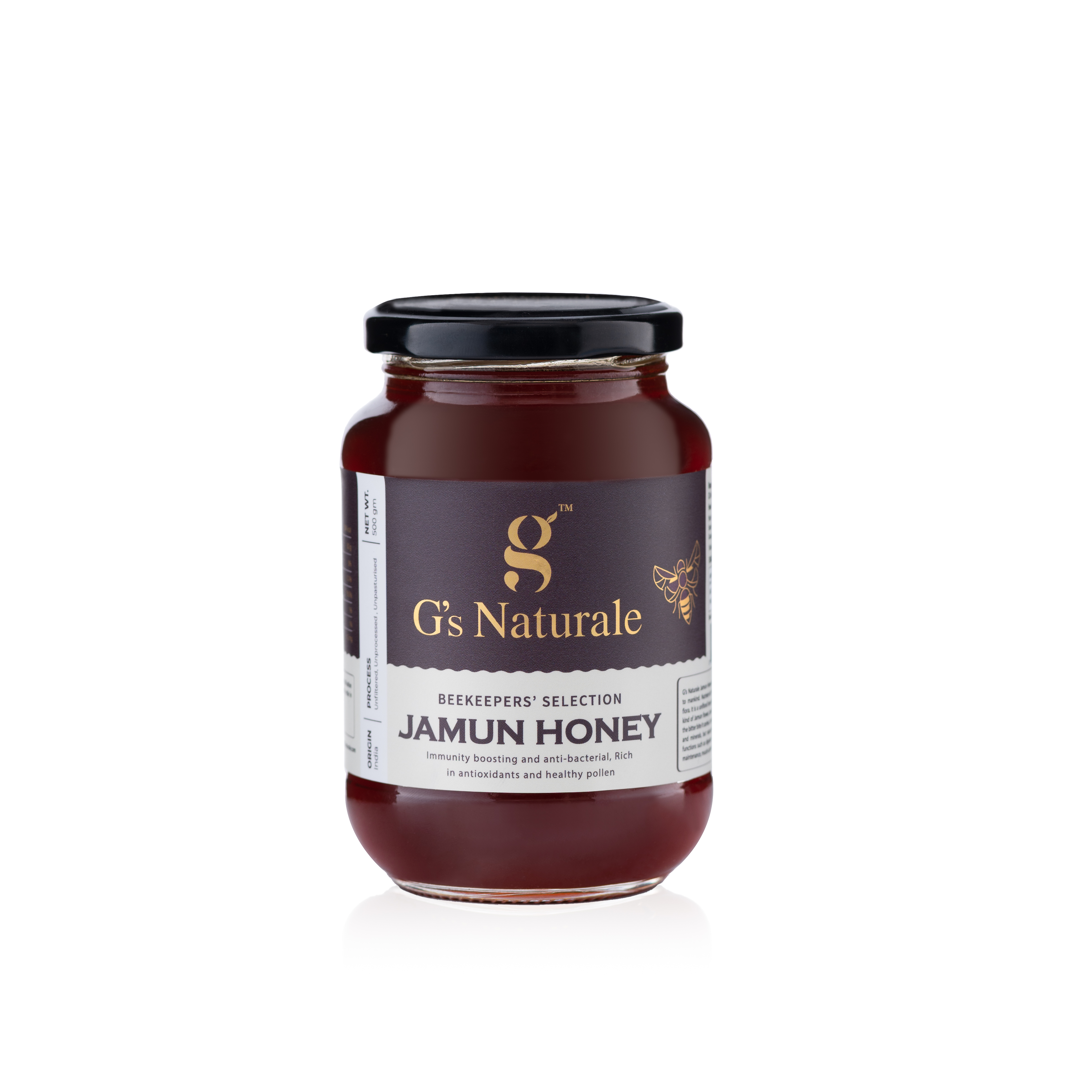 Born from the nectar of the Jamun flower, Jamun honey is a unifloral honey. Unifloral means that it is made only with the nectar of the Jamun flower. Jamun honey is unique as it is enveloped with a tint of bitterness. Its taste is its biggest surprise as it is a combination of sweet, sour, and bitter.