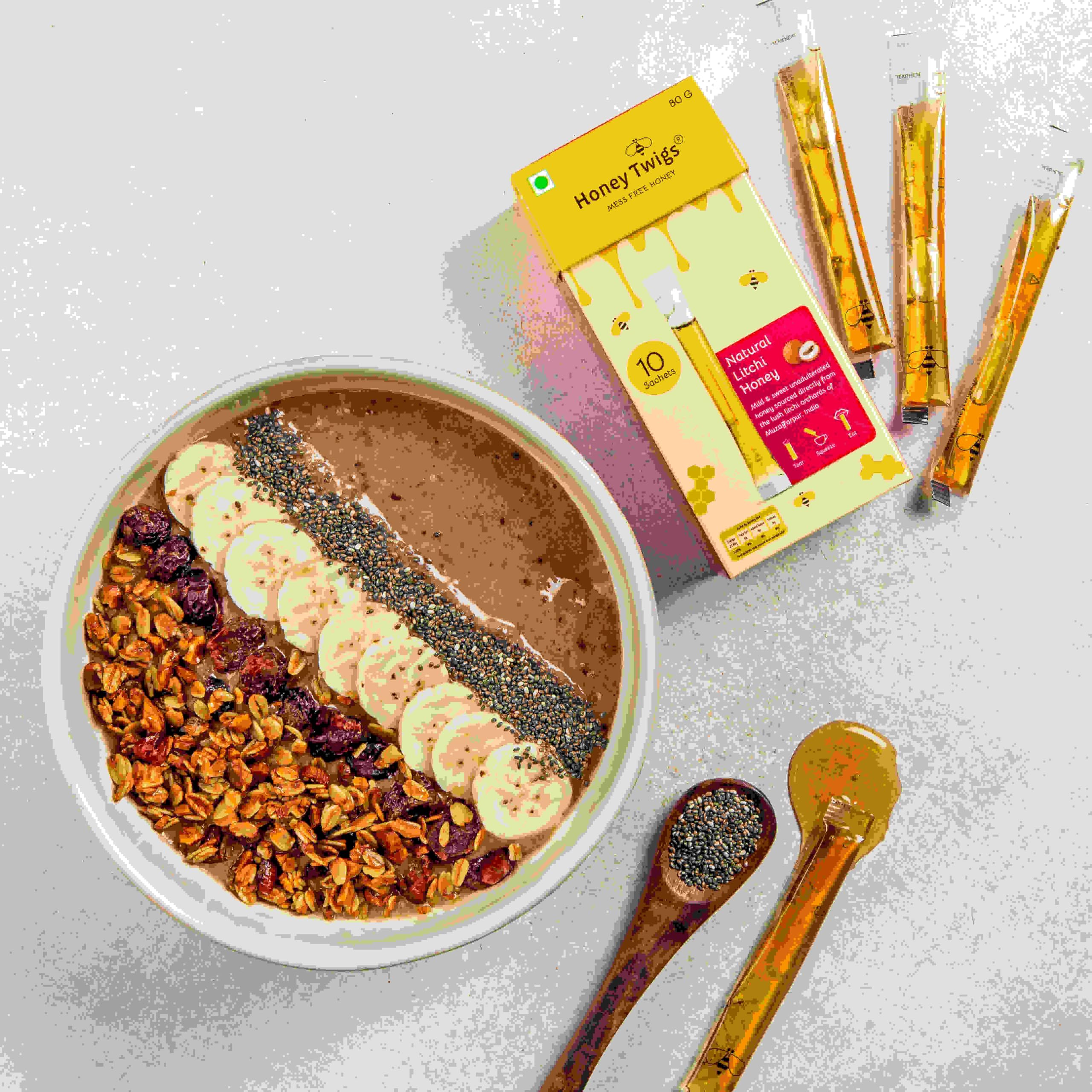 Honey Twigs Natural Honey | Himalayan Multi Floral Honey and Litchi Honey 320g(240g + 80g - 40 Twigs) | Infused with Natural Ingredients | 100% Pure Natural Honey | No Added Color | No Preservatives