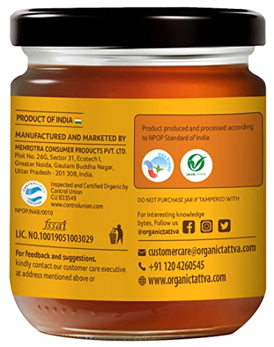 Organic Tattva Organic Unprocessed Unfiltered Unpasteurized Wild Raw Honey 250 Gram Bottle