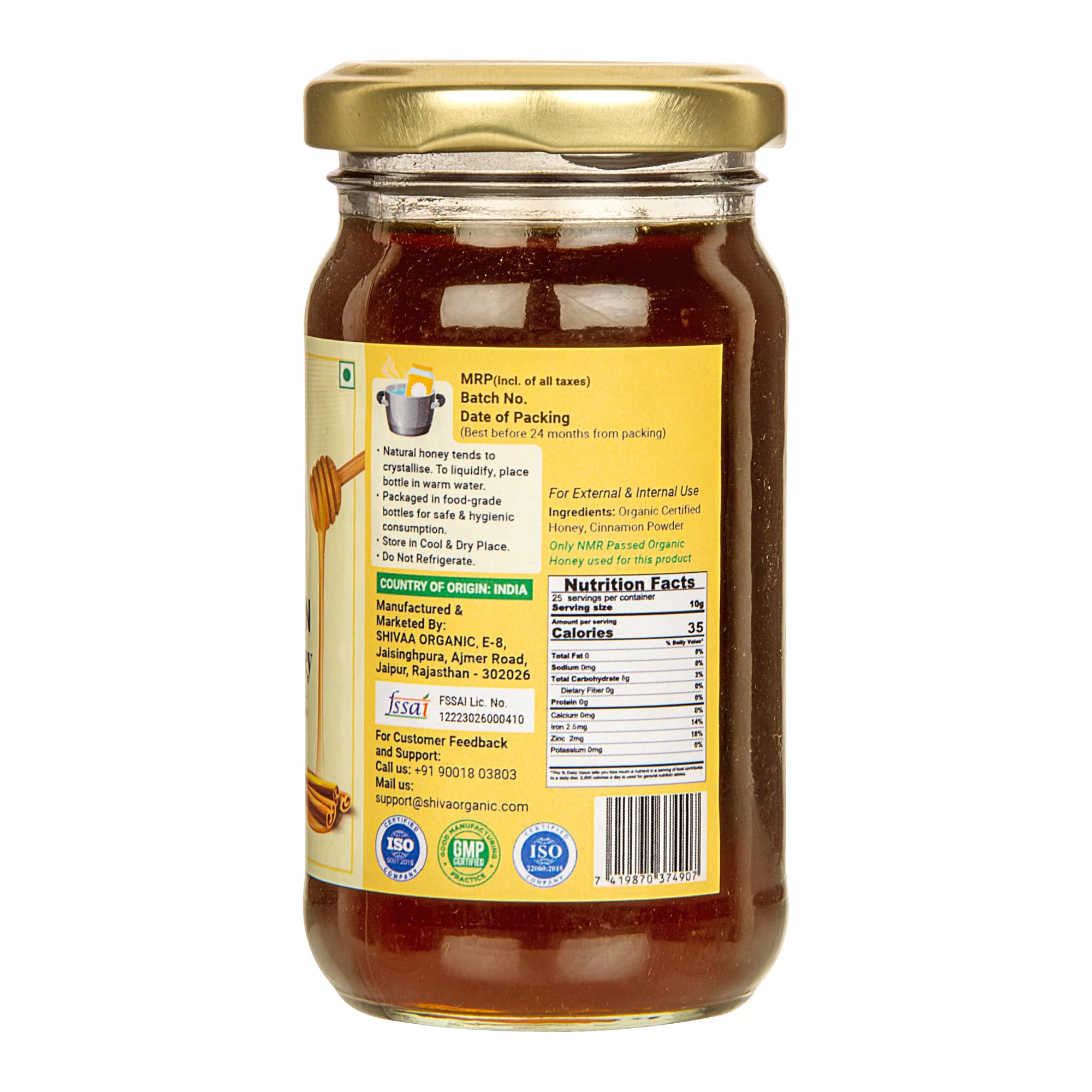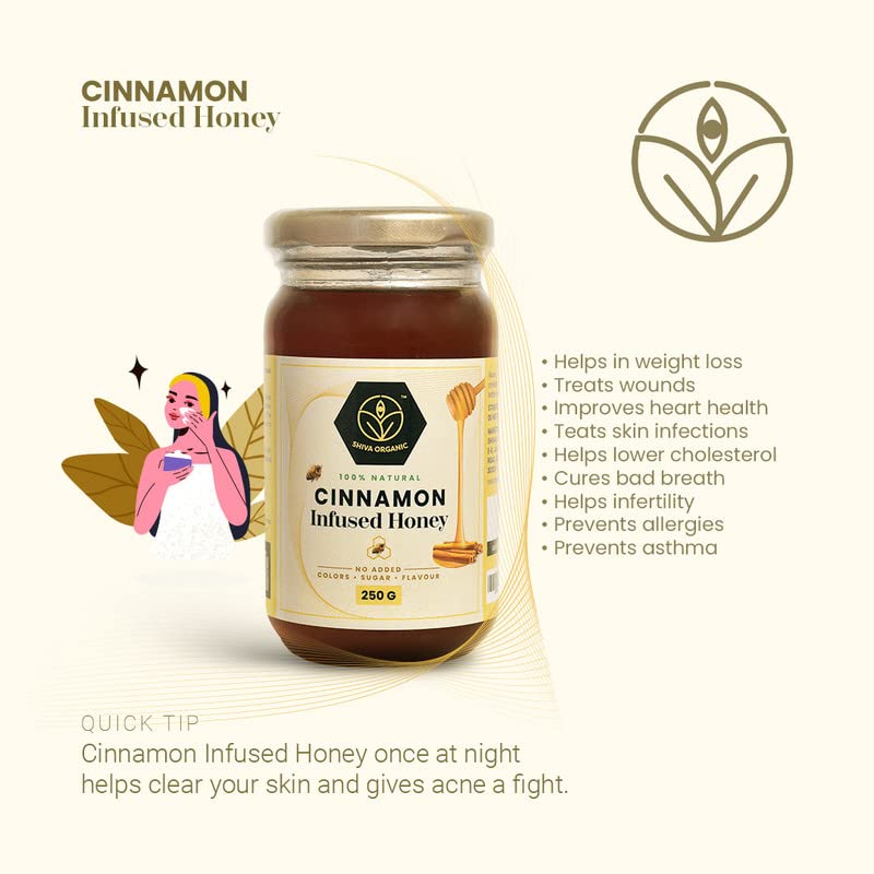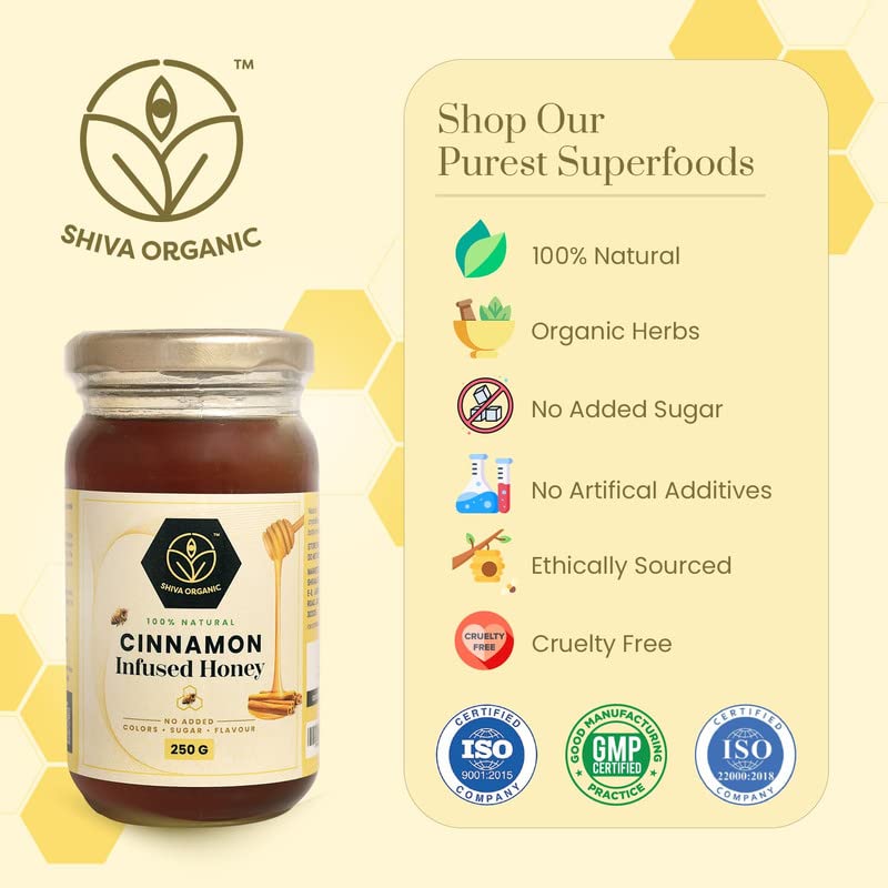 Shiva Organic Infused Honey |100% Natural and Pure Honey No Added Sugar No Added Color Flavour Unadulterated (250 g Cinnamon Infused Honey)