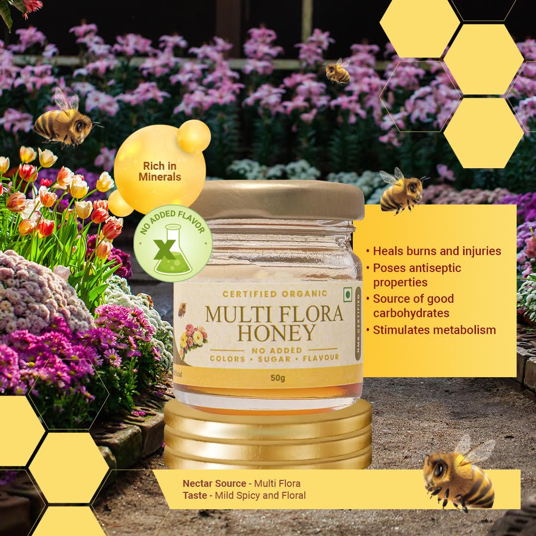 Shiva Organic Raw Multi Flora Honey 50g | 100% Pure NMR Tested | Raw and Unprocessed