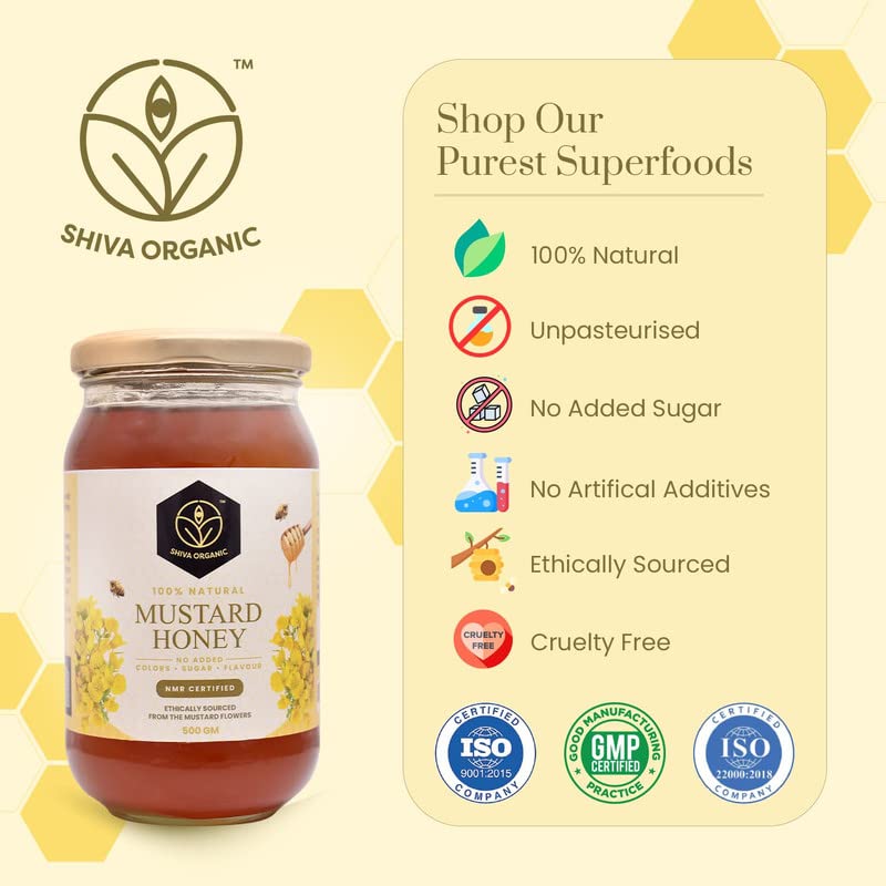 Shiva Organic Raw Mustard Honey 500g | 100% Pure NMR Tested | Raw and Unprocessed