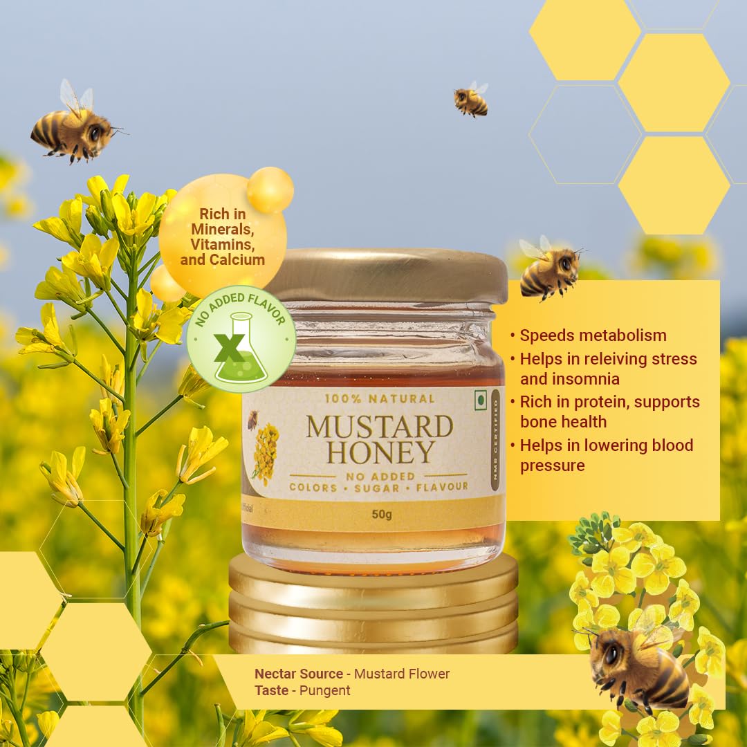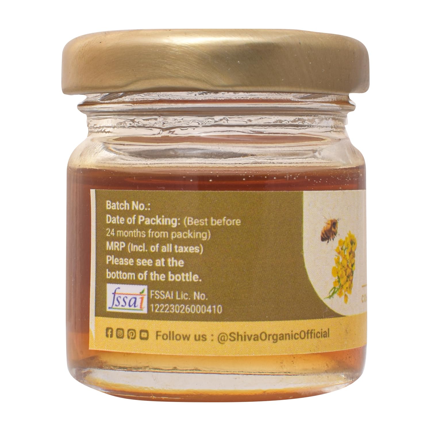 Shiva Organic Mustard Honey is collected directly from the best mustard flower region in India in their peak flowering season which makes it pure and natural.It attracts a lot of attention because of its natural sweetening and medicinal benefits.Our honey is not infused rather the bees collect the nectar from Mustard flower which makes it natural and nutrient-rich.Nectar Source: Mustard flowerColour: Creamy whiteTaste: PungentBenefits of Mustard Honey: Speeds metabolism Helps in releiving stress and insomnia Rich in protein supports bone health Helps in lowering blood pressureNMR certifies that this honey has no adulteration and origin authenticity.