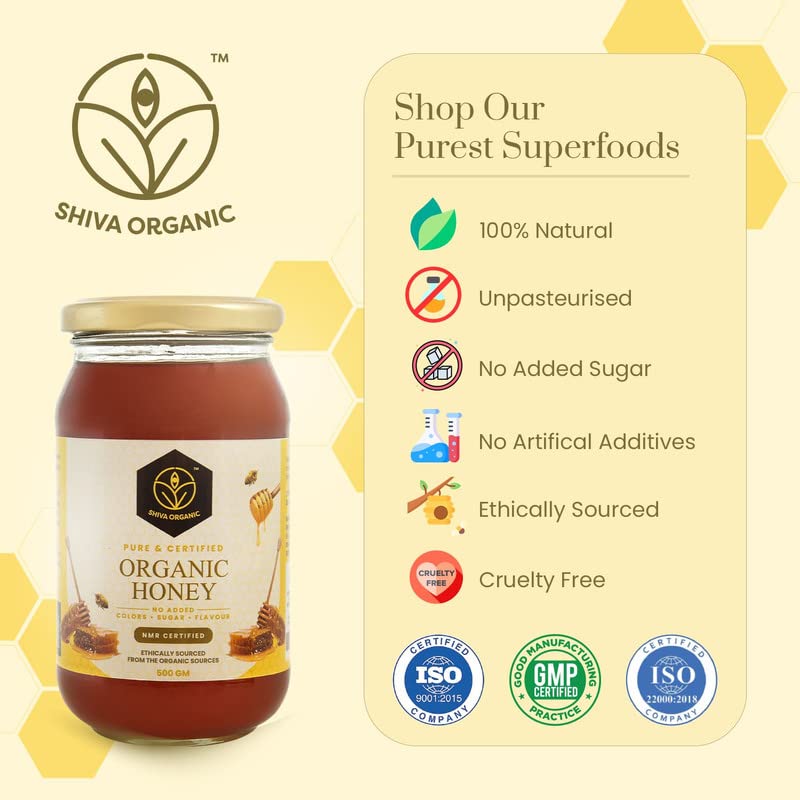 Shiva Organic Raw Organic Certified Honey 500g | 100% Pure NMR Tested | Raw and Unprocessed