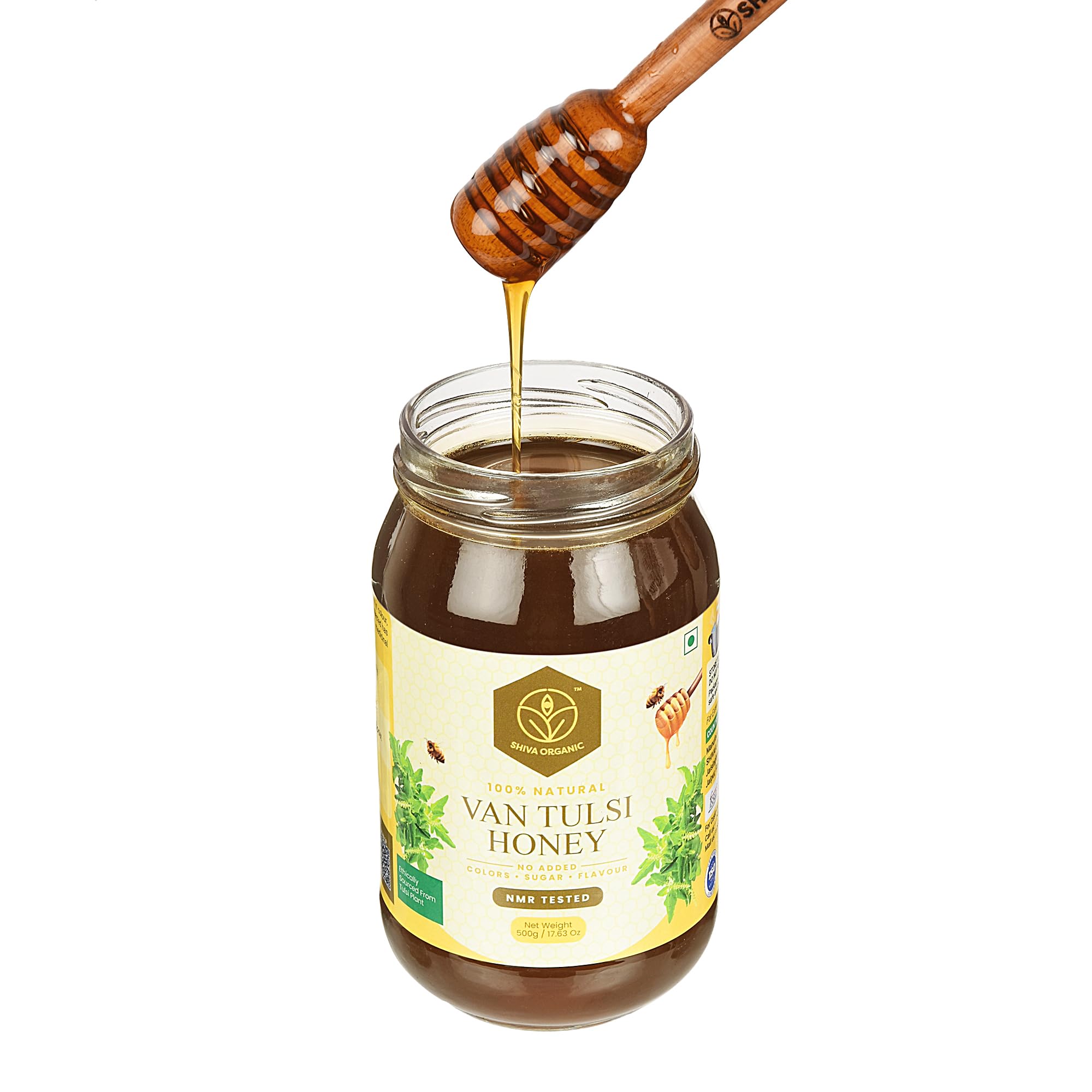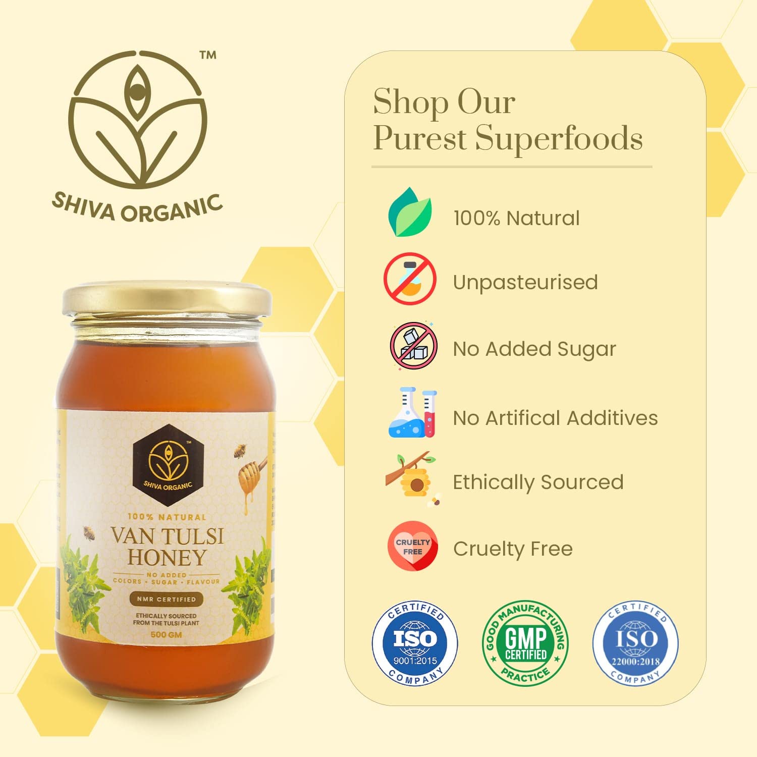 Shiva Organic Raw Van Tulsi Flower Honey 1 kg | 100% Pure NMR Tested | Raw and Unprocessed