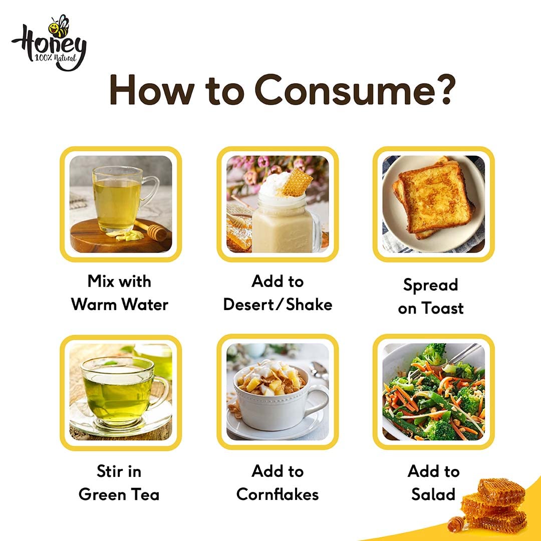 • HOW TO CONSUME: Use honey or shahad as a natural substitute for sugar in your food. You can also consume it with lukewarm water or milk twice a day for better health.</p>