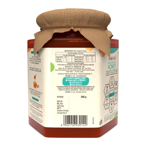 TruSoul by Baidyanath Raw Organic Honey | Sourced from Himalayas | 100% Raw & Natural | No Added Sugar | No Antibiotics | Non GMO | Unpasteurized (Pack of 1 500 gms)