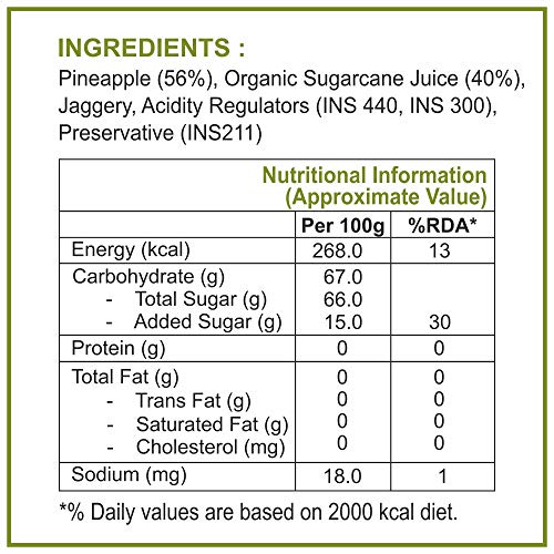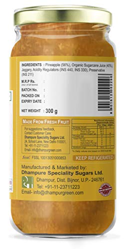 Remember craving something utterly sweet yet healthy and wholesome? This is your answer to that in a packed bottle. This fruit conserve/ marmalade/ jam/ preserve is a medley of flavours and goodness from real fruits and organic sugarcane juice. Enjoy anytime- be it your breakfast evening snack or a midnight sweet tooth craving. Best partnered with bread roti's parathas or even spread on a crunchy cracker or topped on your cake; even stirred in any drink. The next time you want to whip up a bread and jam delight for your kids or yourself with âganne ka rasâ you know Dhampur Green has an answer for you! Made in India by a farmer-led enterprise the production work is done by local farmers who take immense pride in creating products that add value to the lives of our consumers. Marginal farmers sell us their raw produce locally and no longer have to struggle with middlemen strict mandi bargains or distress sales. Support the Indian Farmer.