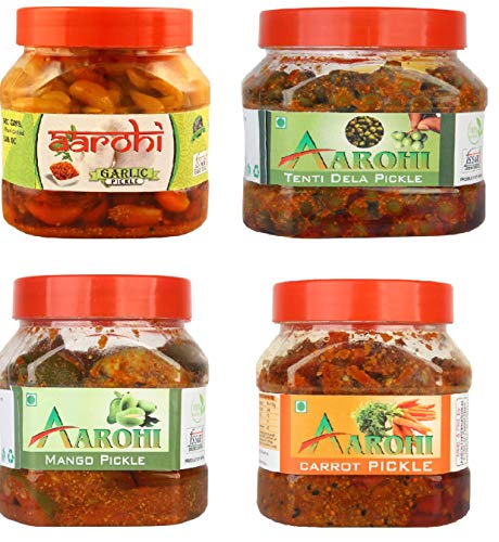 Aarohi 4 in 1 Punjabi Pickles Combo Mango Pickle 500 gm Carrot Pickles 500 gm Tenti Dela Pickles 500 gm Garlic Pickle 500gm. (2 kg)