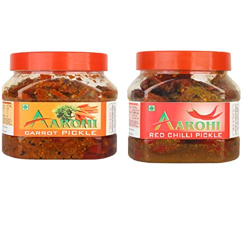 Aarohi Combo of Pure Organic Carrot Pickle Gajar ka Achar (500gm) & Red Chilli Stuffed Pickle (500gm) Feel The Real Taste Made by Grandma (Pack of 2)