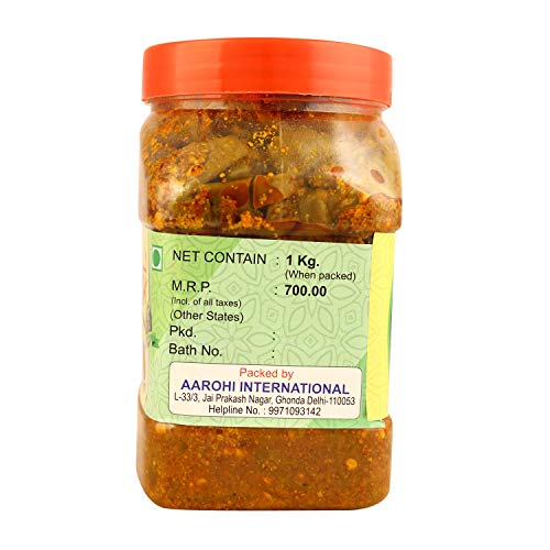 Aarohi Masala Homemade Rajasthani Mathania Green Chilli Pickle (Without Oil) (Without Preservatives ) Athana Mirchi (900 Gram)