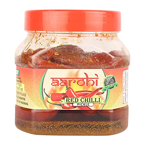 Aarohi Natural Pure Hand Made Made in India Home Made Laal Mirch Ka Achar Red Chilli Stuffed Pickle (400 Gram)