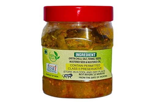 Aarohi Organic Homemade Marwadi Rajasthani Green Chilli Pickle Achaar Taste of Rajasthan -400 Gram