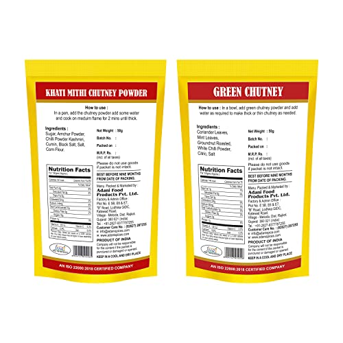 Adani Spices Combo Pack of Instant | Premix | Ready to Make Khati Mithi Chutney & Green Chutney Powder 50gm Each Pack of 2 Total 4 Quantity
