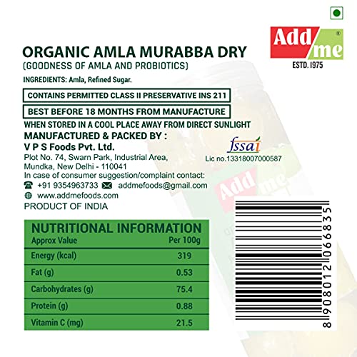 Add me Dry Amla Murabba 400G Fine Quality Without Sugar Syrup awla muraba Pet Jar