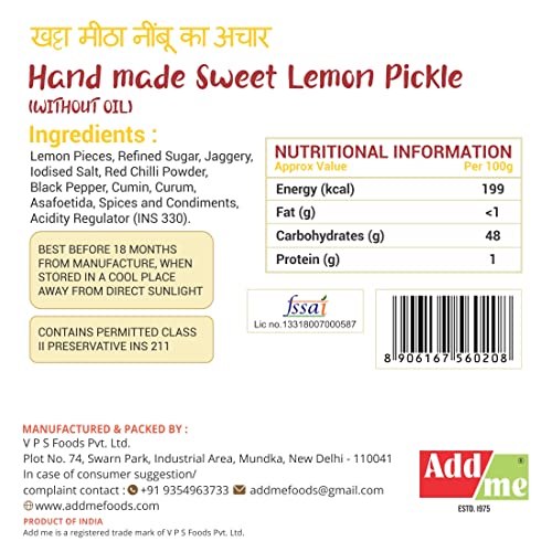 Add me Hand Made Sweet Lemon Pickle 600 g Without Oil Homemade Taste Purana nimbu ka achar 600gm