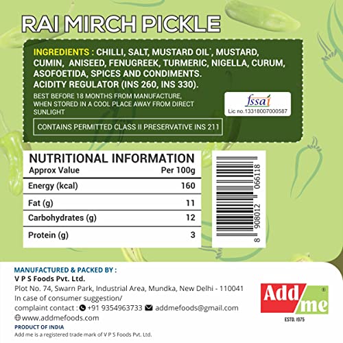 It's not purely mirch ka achaar. Rather in miscellaneous pickle (mango), there are few broken pieces of Chilli whose taste is masked completely by mango/other pickle. If you want to pure Chilli pickle, you will be severely disappointed....