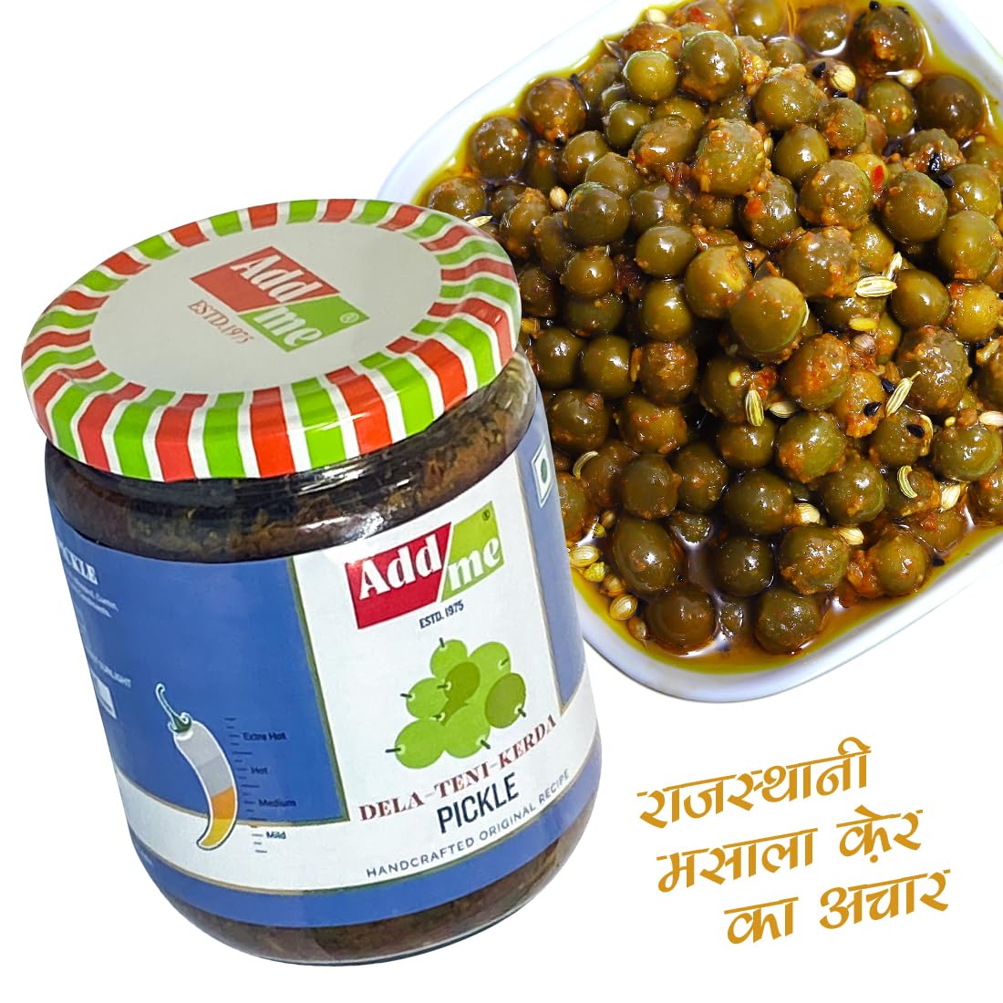 Add me tenti dela pickle is made with home ground spices and tenti. It is a rare fruit that grows on the Kareel tree. tenti pickle is bitter in taste as raw. it combined with spices and mustard oil to provide you a finger-licking taste of tenti pickle. This tenti pickle is also known as kair ka achar.