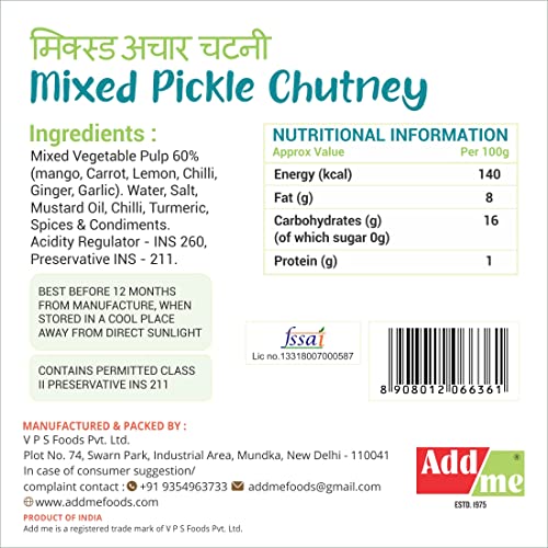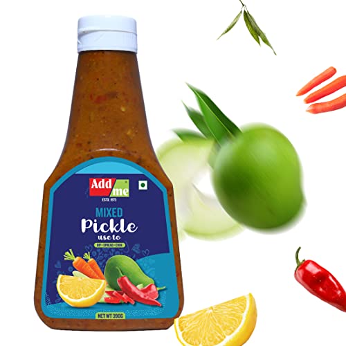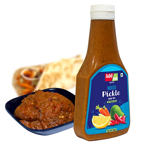 Mixed Pickle in a bottle. spread cook and dip. makes delicious parantha when mixed with dough. savour it with all indian dishes.