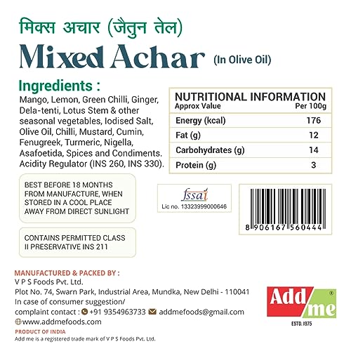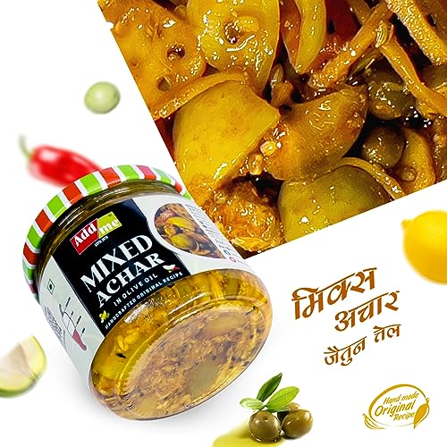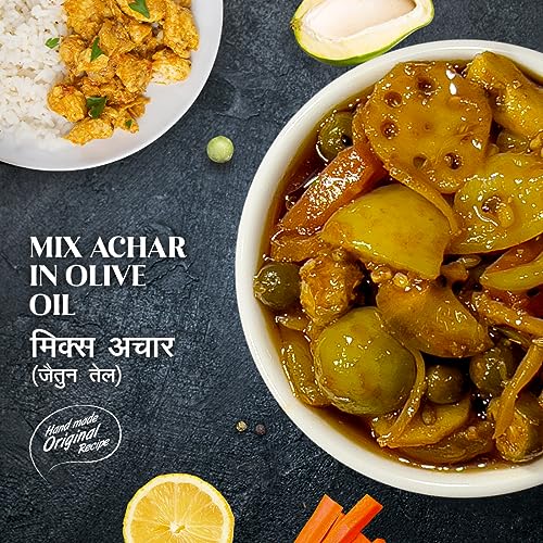 This Mixed Pickle is made from fresh green mangoes,lime, chilli, dela tenti, lotus stem, lesuda & other finest Ingredients. Handcrafted to Perfection. It has a unique aroma & flavour. Buy Mixed pickle in olive Oil 300g