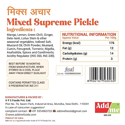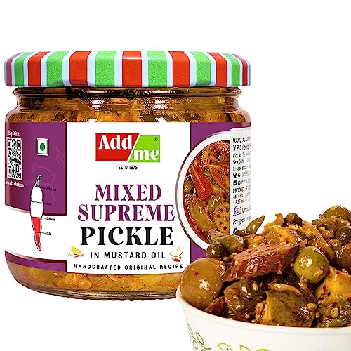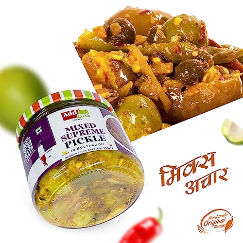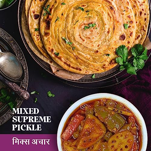This mixed Pickle as the name says supreme in real sense supreme to all its conventional counterparts. It still holds the age old traditional Homemade mixed Pickle recipe. All Seasonal vegetables like green mango, green chilli, lime, lotus stem, lesuda, ginger and peeled mango is used. You will love its homemade taste.