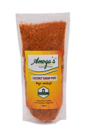 Amoga's Pickles Factory Andhra Authentic Mango Thokku Pickle / Achar 200 gm & Coconut / Kobbari Karam Podi 200 gm Combo Pack (Pack of 2)