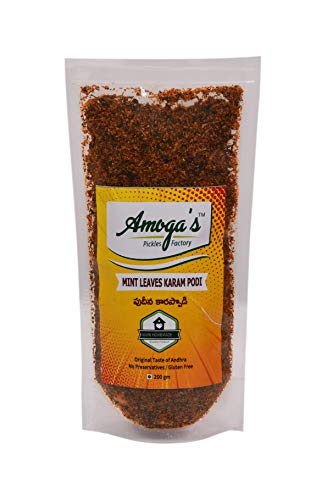 Amoga's Pickles Factory Andhra Coriander (Kothimeera) Karam & Mint Leaves (Pudina) Karam) Combo Pack Podi 200 gm (Pack of 2)