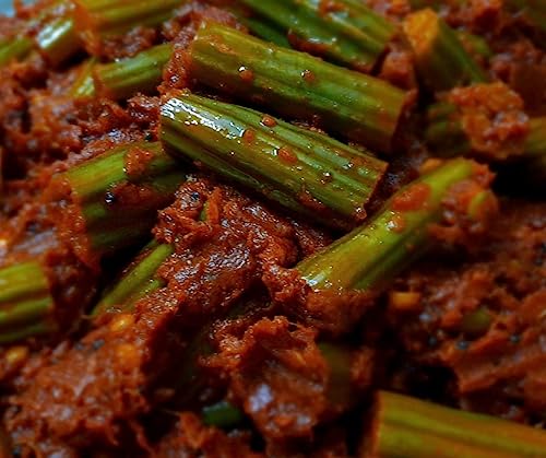 A very different and unusual pickle from the kitchens of south india the Drumstick pickle is perfectly spiced and 100% sure to tickle your taste buds.Amoga's Pickles Factory brings to the unique taste of Drumstick pickle.Drumsticks have anti-inflammatory properties and generous amounts of vitamin C.Drumstick is also known by several vernacular names such as shevaga in Marathi shajan in Hindi murungai in Tamil muringnga in Malayalam and munagakaya in Telugu. Drumstick pods and leaves are a storehouse of essential nutrients.Drumstick is praised as a tree of life as almost all the parts of the tree are beneficial and used for various purposes