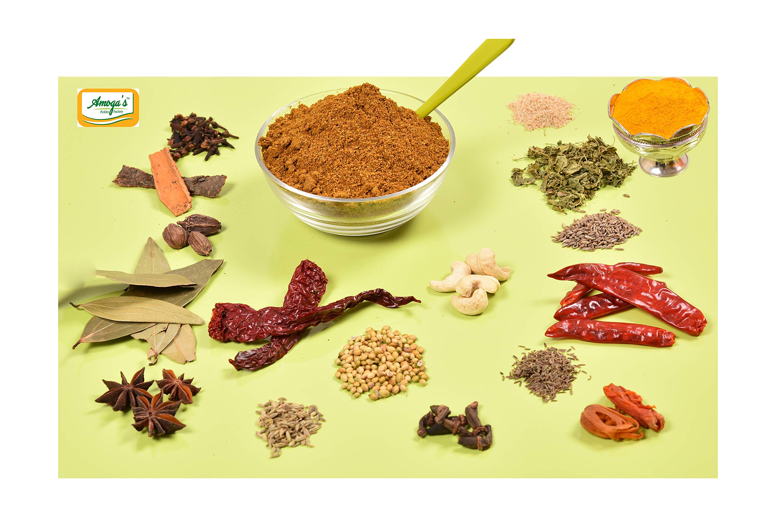 Amoga's Pickles Factory Mutton Masala is a mixture of ground spices used in preparation of indian foods.The taste depends on the Quality we use so we use the best in quality which were grown regionally.Ready made packed Masala's were used by most of the working women This Mutton masala goes well with South Indian and North Indian Mutton Curries.Cleaning & sundrying them and roasting is the important for hygienic reasons.so we follow the same procedure.We have researched a lot and finally made this blends of Mutton Masala.
