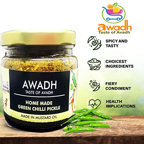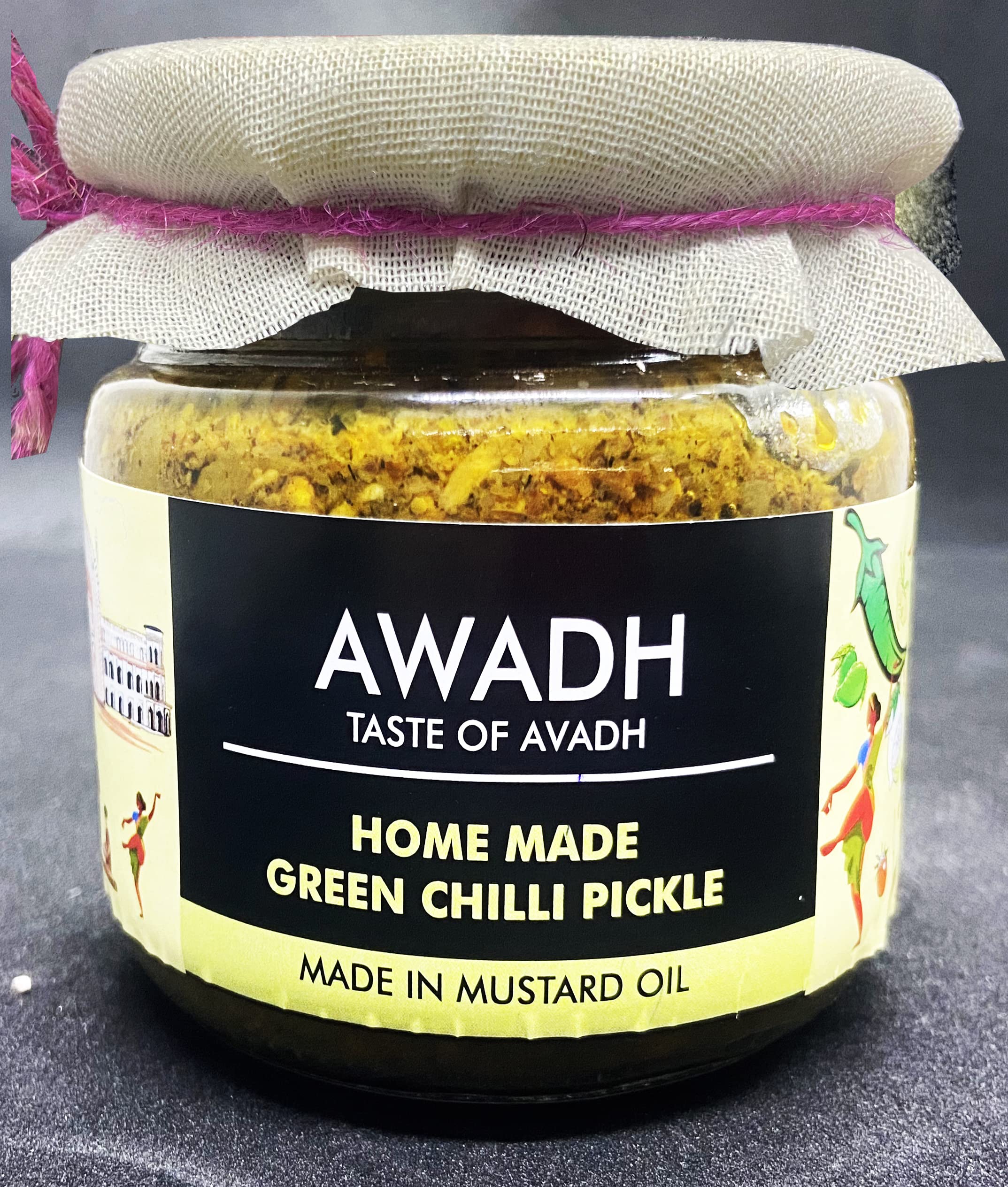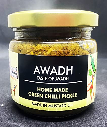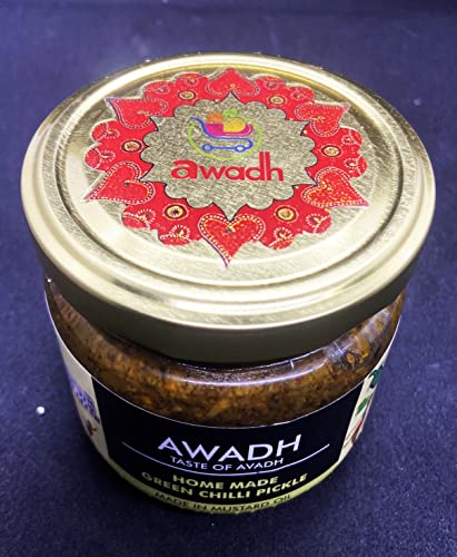 HomeGroceryFlavorsHomemade PicklesAWADH- Green Chilly Pickles Made with Mustered Oil 250 gm Hari mirchi ka acharSarso ke Tel me Bana hua Desi Ahar Home made Pickel