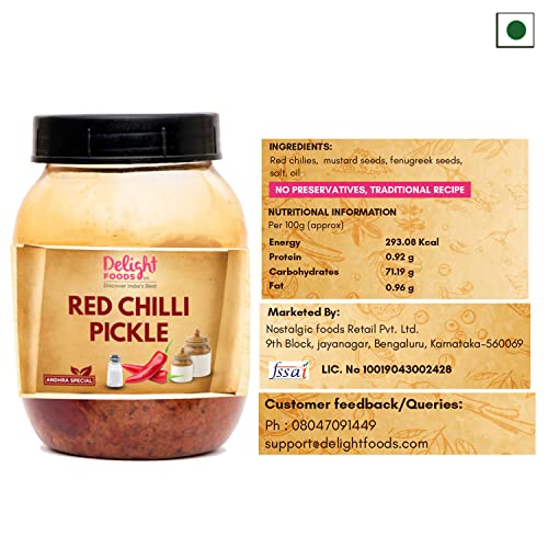 Delight Foods Andhra Special Pickles 250G (Red Chilli)