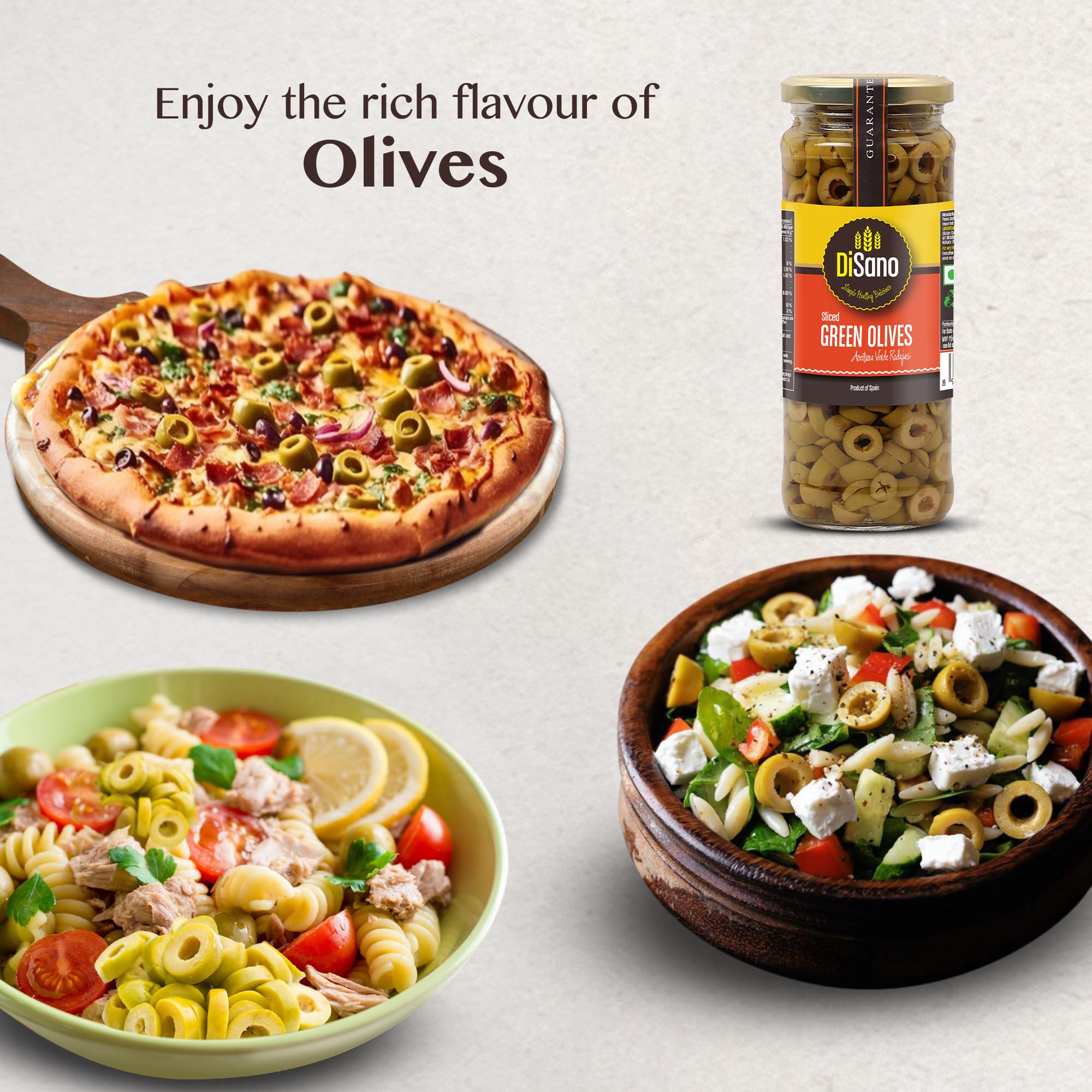 Italian and Mediterranean cuisines celebrate the bold and robust flavours of Sliced Green olives