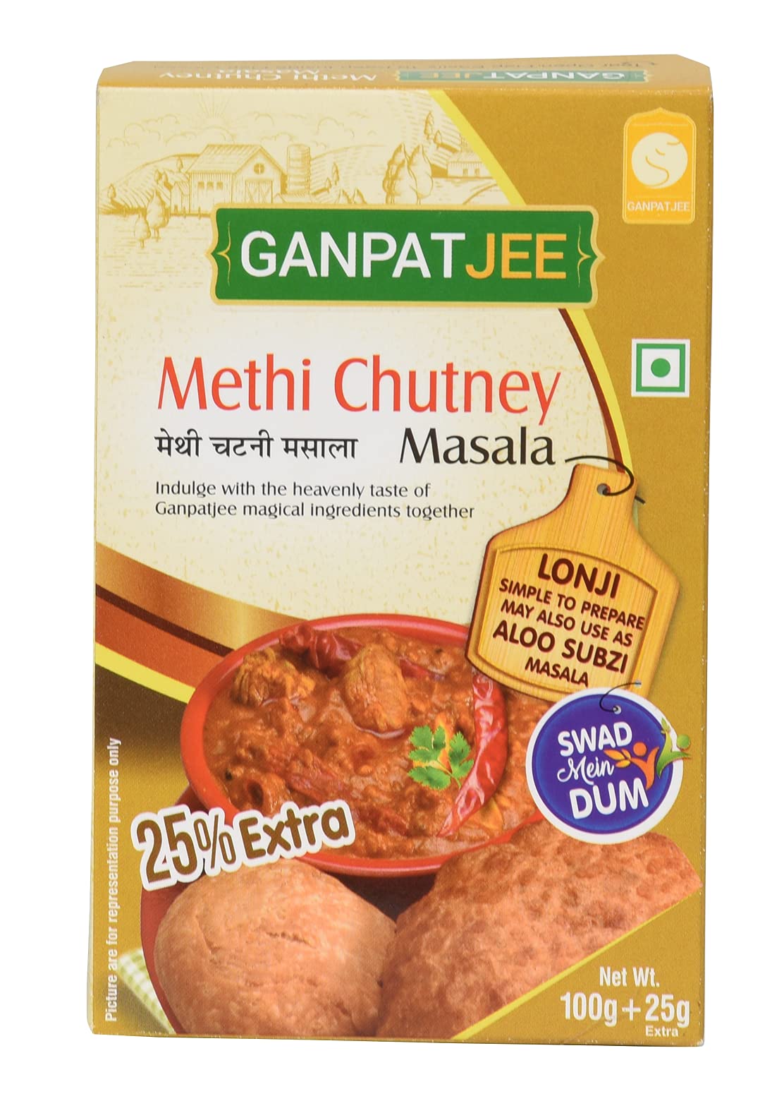 Ganpatjee Methi Chutney Lonji Masala250g | Pack Of 125g x 2 | Easy To cook Bedmi aloo Sabzi Chutney Old Delhi Taste