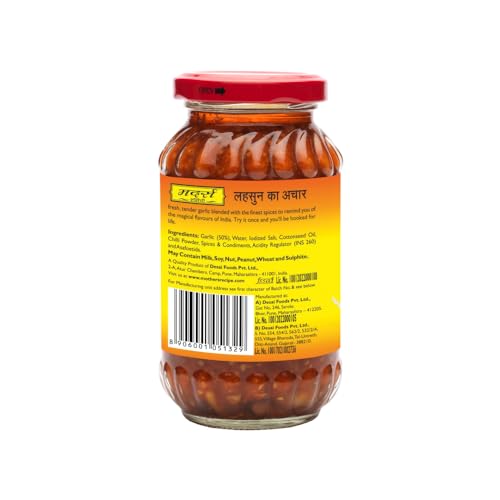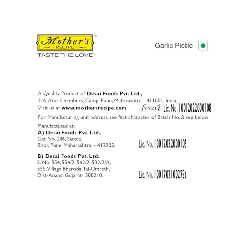 Awesome taste. Sufficient quantity of garlic (no fillers or anything else) I would recommend this for anyone who loves garlic pickle. Also their packing was unique & perfect (a strong, air filled pouch).