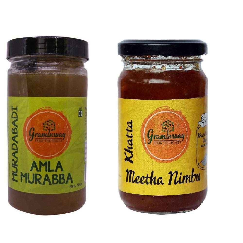 Graminway Combo Pack of Muradabadi Amla Muraba 500 gm and Khatta Meetha Nimbu Achar 200 gm