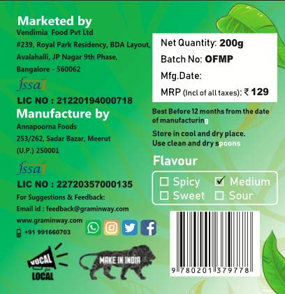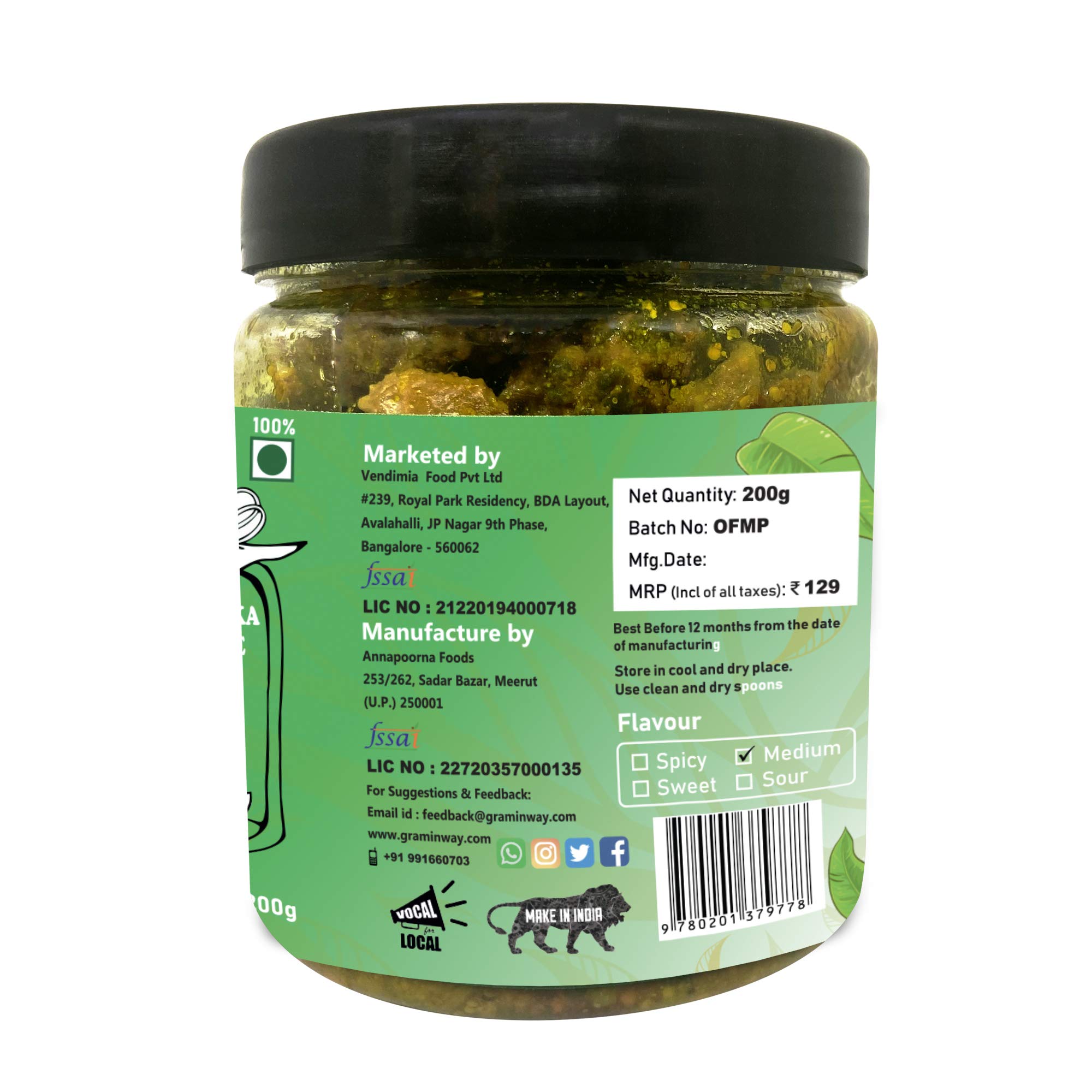Mangoes are the one fruit that everyone loves unanimously. Whether its the succulent sweetness in ripe mangoes or the sharp tang of the raw green ones mangoes are a must-have. Mangoes are rich in Vitamins A and C and are said to boost immunity control cholesterol levels and promote digestion. Graminways Dry Mango Pickle is made from mangoes handpicked from a farm in Meerut where the farmer lovingly tends to every one of his crops sans chemicals and he ensures that all their goodness is well-preserved. We then trim cut and mix the mangoes with just a few drops of cold-pressed mustard oil and the freshest of spices. We then stir it well and bottle up this goodness for you to enjoy with your chosen meal of the day!