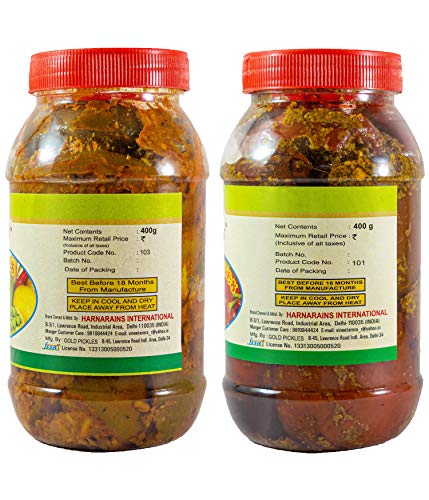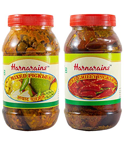 Harnarains Homemade Organic Mixed & Red Stuffed Chilli Pickle 400 gm (Pack of 2)
